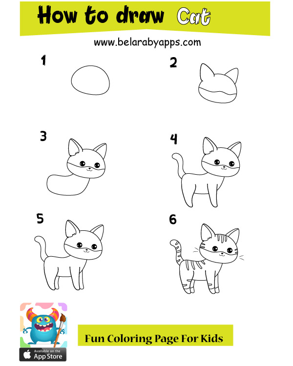 Just a few steps to follow and you will be drawn cute cat of your own easily